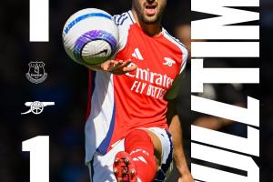体育资讯04月06日讯 英超第31轮,阿森纳1-1战平埃弗顿,近6轮比赛只赢了2场,丢了9分。